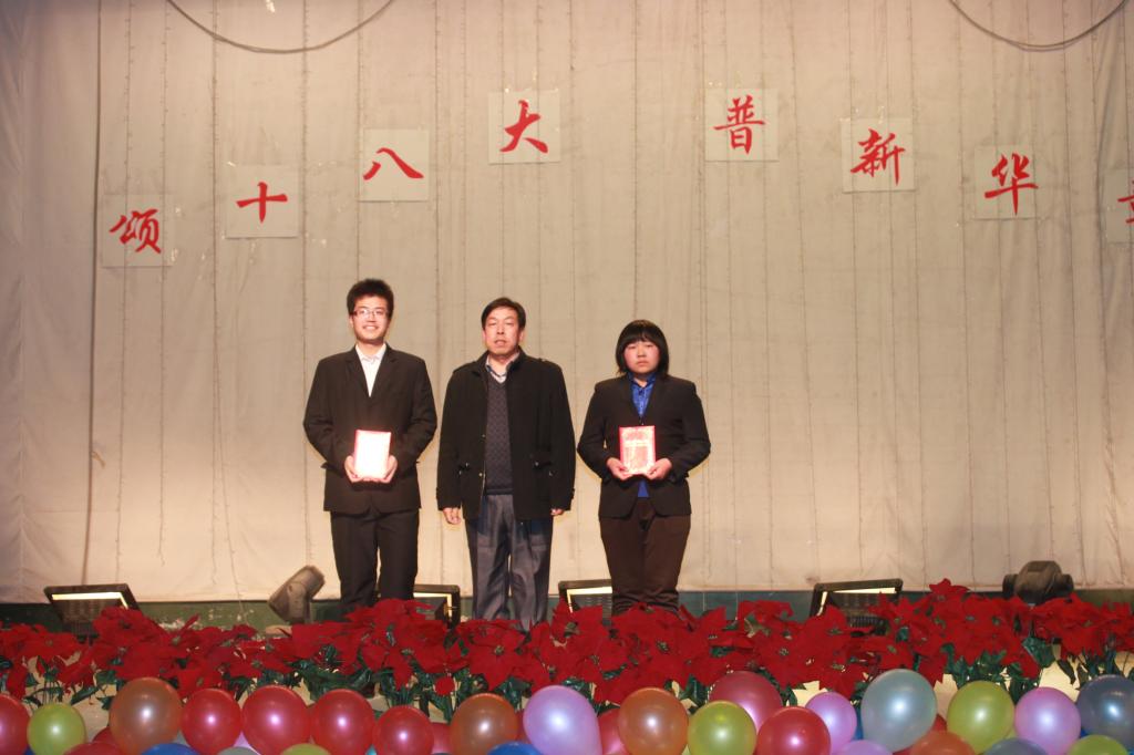 寇伟强的《绽放十八大后的中国》,李云菲的《秋思十八大,争做好青年》,孙笑飞的《追忆光辉历程,奉献无悔青春》,他们对过去与现在做了比较,体现了在中国共产党领导下经济发展的飞快发展,表现了中国坚持走中国特色社会主义道路是正确的选择,号召广大青年学生坚持中国共产党的领导,心中装着党,时刻以党员的标准来要求自己,为了祖国的繁荣昌盛做出自己应有的贡献。他们获得了本次比赛的二等奖。