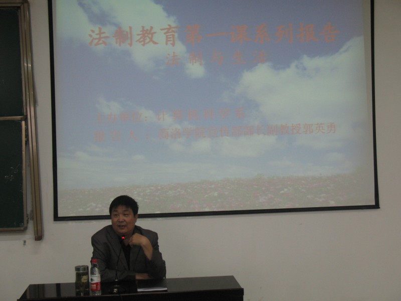 ,我计算机科学系特地请商洛学院宣传部部长副教授郭英勇为我系学生在一号楼报告厅三上了一节生动有趣的法制教育课。