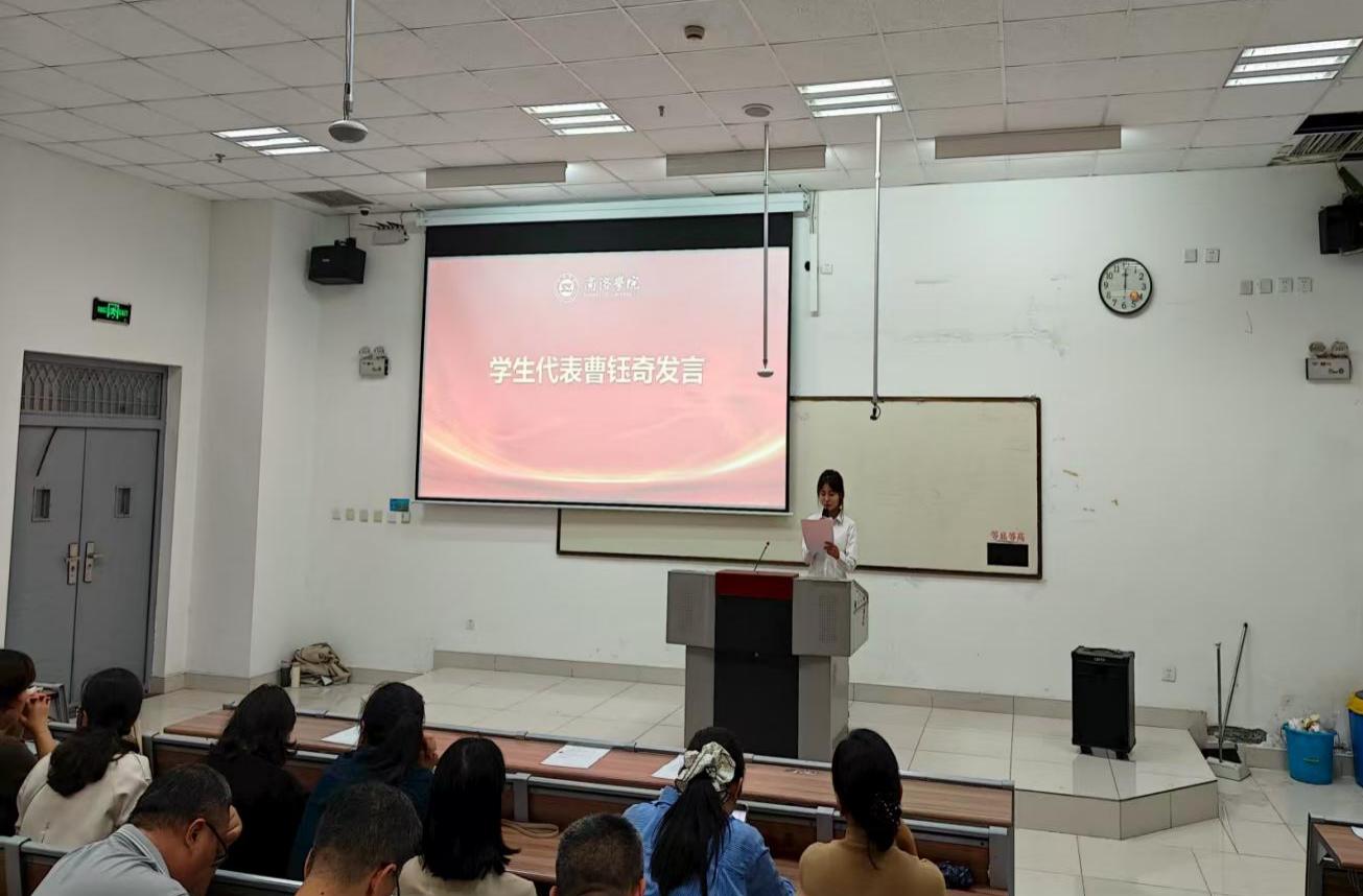 最后,新生代表曹钰奇、杨启辰、任雨菲等同学发言。他们代表全体新生表达了对大学生活的期待与憧憬,承诺将以积极的态度投入学习,遵守校纪校规,团结同学,努力成长为符合专业要求的高素质人才,不辜负学院与教师的期望。新生们的发言充满了朝气与活力,展现了2025级新生的良好精神风貌。