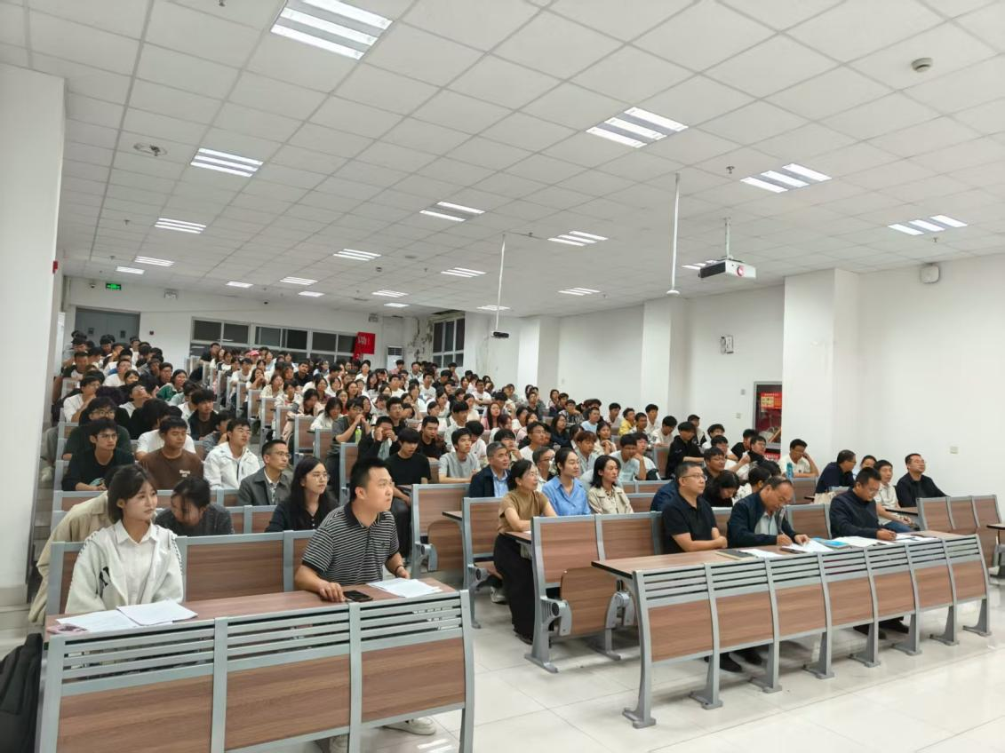 王辉聚焦“个人成长与价值塑造”,为新生带来了温暖而务实的建议。他结合自己学生工作经验,围绕“心态调整、目标规划、品德修养”三个维度,叮嘱新生们要尽快适应从高中到大学的角色转变,既要制定清晰的学业目标,也要注重人格修养的提升。他强调,大学不仅是学习知识的地方,更是学会成长、培养综合素质的重要阶段,希望新生们在注重专业学习的同时,积极参与校园文化活动,培养责任意识与团队协作能力,在学院度过充实而有意义的大学时光。