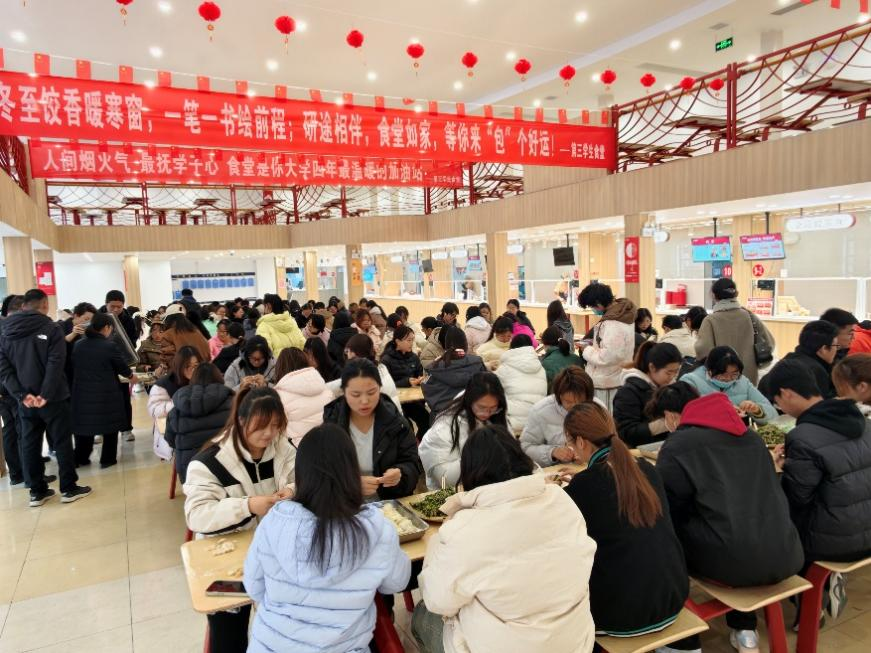 为弘扬中华传统文化,让学生在寒冬中感受校园温暖,我院联合后勤保障处于冬至当日,在学校第三食堂开展“暖冬冬至,欢乐包饺”主题活动。活动现场食材齐备,氛围热烈,同学们齐聚一堂,在欢声笑语中体验民俗乐趣,共迎冬至佳节。