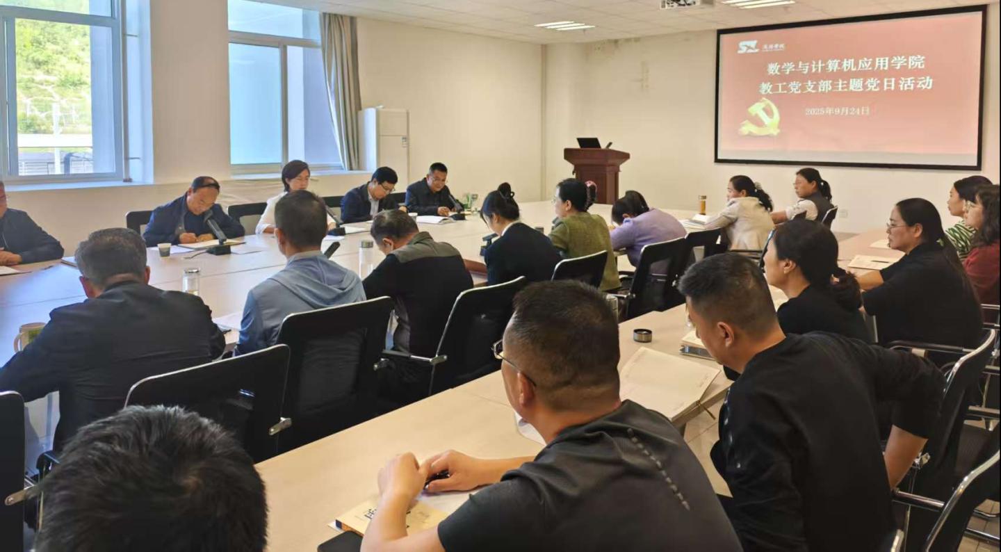 为深入学习贯彻习近平总书记关于中央八项规定精神学习教育的重要指示,全面落实中央党的建设工作领导小组会议部署要求,数学与计算机应用学院于9月24日在学院会议室组织召开主题党日活动,通过专题领学、党课教育等形式,推动全体教工党员在学思践悟中强化政治担当、凝聚奋进力量。学院党委书记王辉主持会议,全体教工党员参会学习,副校长程敏以普通党员身份全程参与组织生活,与党员教师共学共研,共话使命担当。