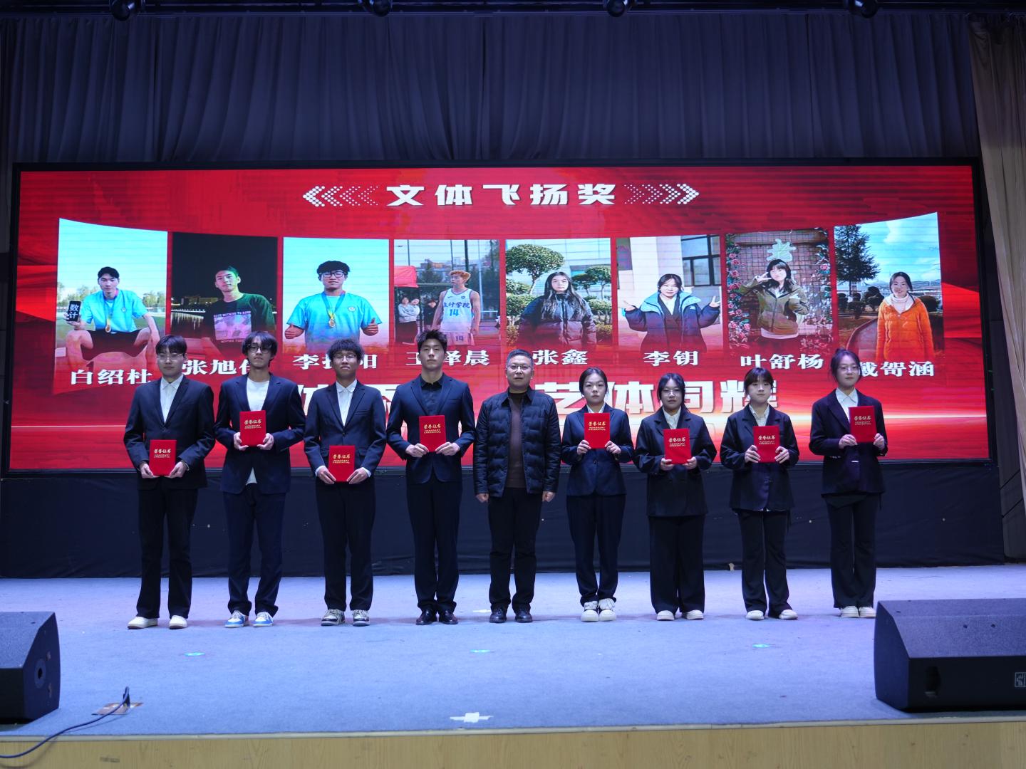 表彰环节作为大会核心亮点,学院对各领域表现突出的学子隆重表彰,颁发学业卓越奖、文体飞扬奖、志愿标兵奖、思想先锋奖四大奖项。李正明、张雨欣等思想先锋坚定信念,锚定成长航向;白绍杜、李振阳、李玥、张鑫等文体骨干以热爱为翼,在舞台与赛场绽放风采;王娟丽、张亚军、张芸洁等志愿标兵秉持志愿精神,用行动传递温暖;童程、李璇等学业佼佼者深耕细研,勇攀知识高峰。与会领导为获奖同学颁奖,鼓励他们珍惜荣誉、再接再厉,发挥榜样引领作用。