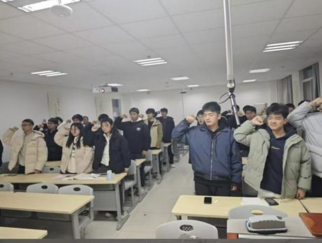 在“赓续五四薪火,凝聚青春力量”主题团日活动中,各团支部创新形式深化思想引领。数学2402班团支部组织团员规范佩戴团徽,以青春姿态诠释新时代共青团员的使命与责任;计算机2503班开展“五四精神与青春书写”主题征文活动,鼓励同学们在创作中深化对五四精神时代内涵的理解;计算机2401班团支部举行“致敬团旗、齐唱团歌”仪式,激昂的旋律点燃青年的昂扬斗志;网络2401班开展集体宣誓活动,铿锵誓言彰显出同学们坚定理想信念、为祖国接续奋斗的决心。