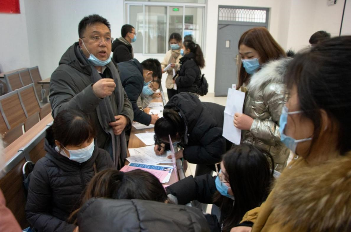为贯彻落实党的十九大提出的“要坚持就业优先战略和积极就业政策,实现更高质量和更充分就业”的精神,拓宽我院毕业生就业渠道,实现我院毕业生高质量就业,在学院统一部署、精心筹划下于12月29日下午在八号数学楼举办了2021届师范类毕业生专场招聘会。我院党政领导张林书记、数学系主任李会荣老师、校招生就业处于晓明、张哲老师、全体辅导员老师抵达现场,了解招聘会进展和安排。