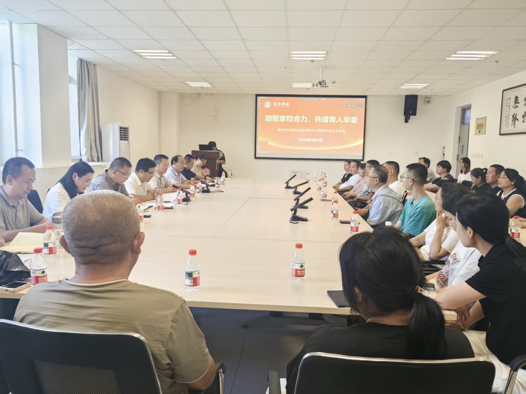 为搭建家校沟通桥梁,凝聚育人共识,帮助新生家长全面了解学院情况,9月1日下午3:00,数计学院在北新街校区8号教学楼6-16会议室召开2025级新生家长交流会。学校驻浙江湖州联络处负责人高扩昌,毕业生代表张佳元、优秀学生代表张雨欣,2025级新生家长代表,以及数计学院领导班子成员、各系主任、学工办主任共同参会,会议由党委书记王辉主持。