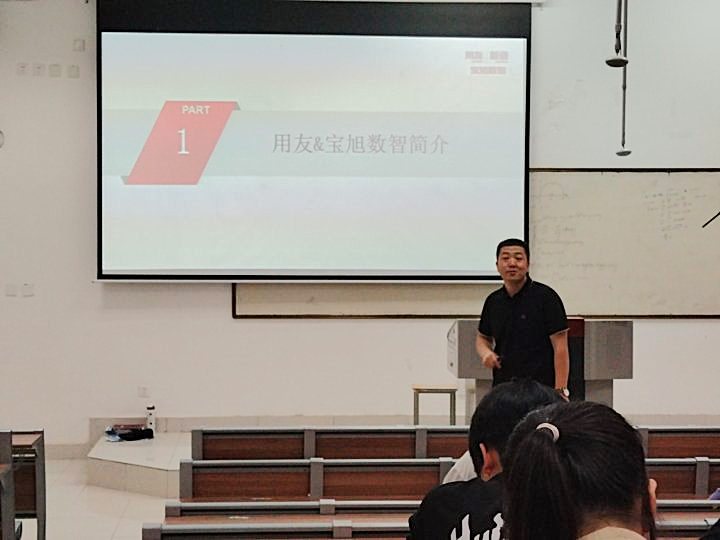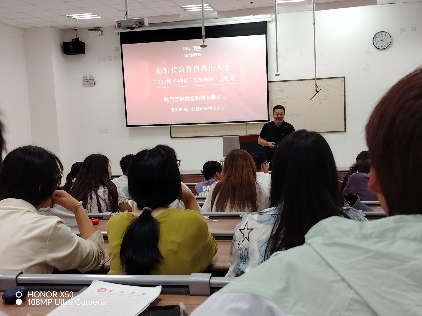 范老师以“新时代数智信息化人才”为主题,结合宝旭科技作为用友集团BIP认证西安授权中心的行业地位,解读数智化转型对人才需求的影响。投影展示“云ERP财务顾问/实施顾问/工程师”等核心岗位,并通过智能制造、智慧财务等领域的案例,剖析数智化人才的应用场景