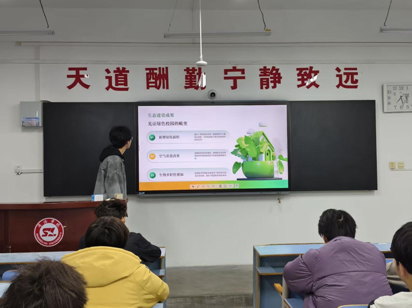 在第48个植树节到来之际,为积极响应习近平总书记“绿水青山就是金山银山”的重要论述,增强学生环保意识与生态责任感,我院团总支开展以“植青春之树,筑生态梦想,绘绿色校园” 为主题的团日活动,我院大一、大二、大三所有团支部参与系列活动。