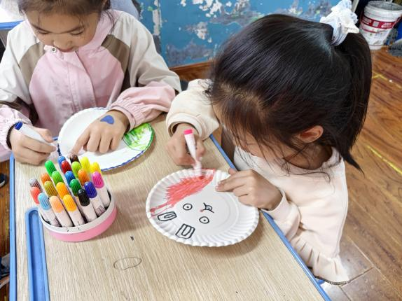 纸盘画创作环节,志愿者为孩子们分发绘画材料,结合心理健康知识,引导大家用色彩与图案抒发内心情绪。孩子们尽情发挥创意,用画笔勾勒美好愿景,在专注创作中舒缓压力、放松身心,以艺术表达实现心灵疗愈。